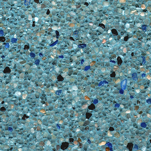 Aruba is accented with royal blue and black colored quartz. The watercolor in most cases falls into a medium dark blue hue.