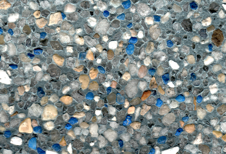 This classic pool finish contains pale white pebbles combined with a small amount of gold and royal blue accent pebbles.